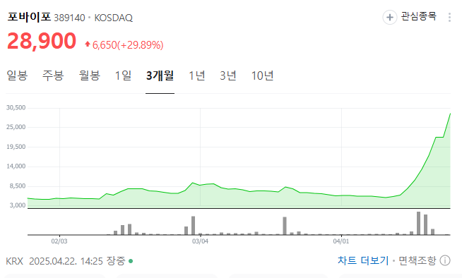 포바이포는 기업 가치만 놓고 보면 고평가 논란도 있을 수 있지만, 시장의 유행과 정책 이슈에 민감하게 반응하며 빠르게 시세가 형성되는 종목입니다. 실적과 내재가치보다는 ‘스토리’와 ‘타이밍’에 베팅하는 것이 핵심입니다.